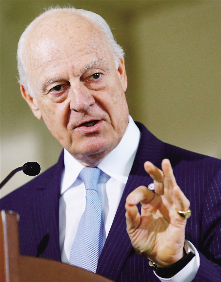 5月11日,在瑞士日内瓦万国宫,联合国秘书长叙利亚问题特使德米斯图拉出席记者招待会。 联合国秘书长叙利亚问题特使德米斯图拉11日在日内瓦对媒体表示,本月16日开启的新一轮叙利亚问题日内瓦和谈应在阿斯塔纳和谈成果基础上“趁热打铁”,尽最大可能形成部分政治前景。 新华社/路透