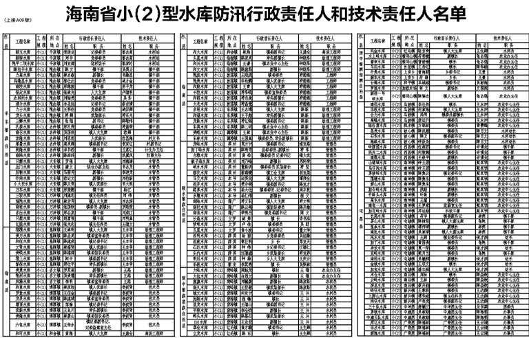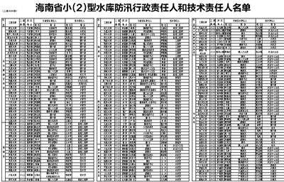 海南省小(2)型水库防汛行政责任人和技术责任人名单