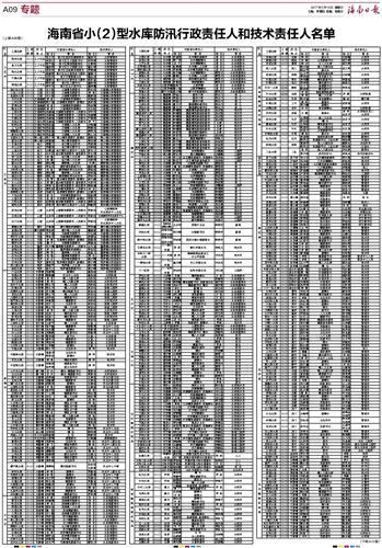 海南省小(2)型水库防汛行政责任人和技术责任人名单