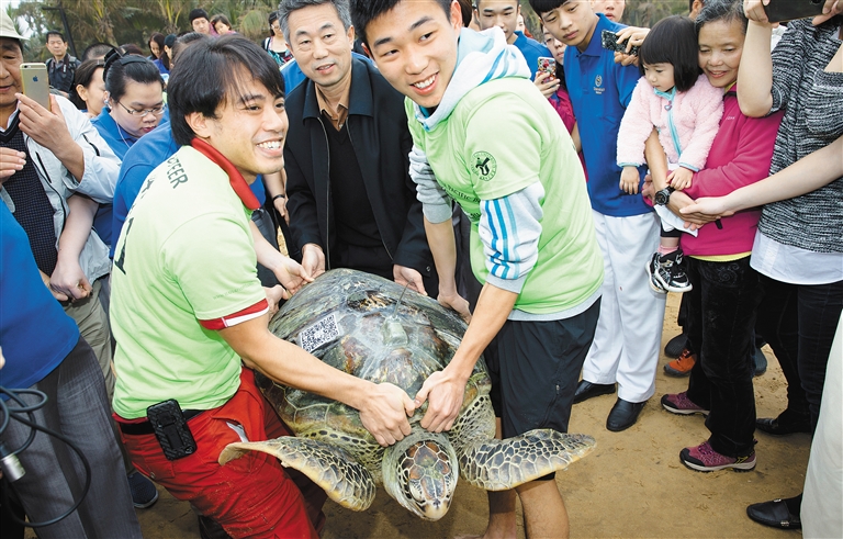 大自然是海龟最好的归宿。3年多来,送到海龟救助站的海龟大部分都被救活了,恢复健康的海龟最终被放回大海。“每次海龟要回归大海,都感觉很舍不得。”王陈仪曾多次到现场看海龟游回大海,每次都忍不住偷偷落泪。公式