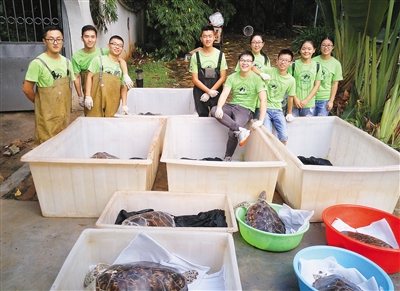 今年,海南师范大学海龟救助站申报的“爱的龟途”海洋生物保护志愿服务项目,在海南师范大学2017年志愿服务项目大赛中荣获金奖。