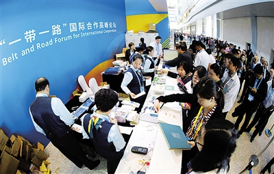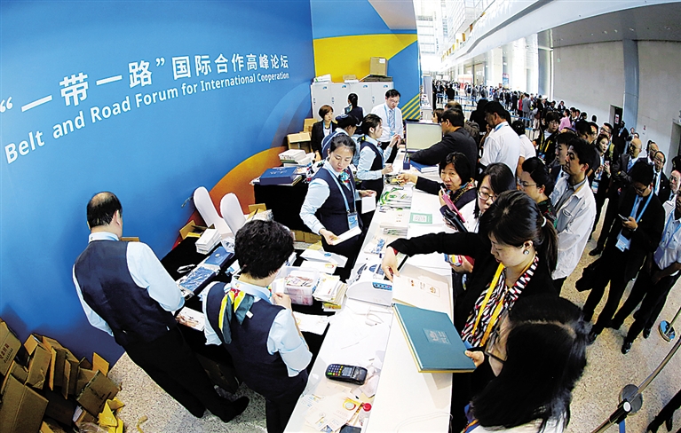 5月14日,在北京国家会议中心,工作人员销售纪念邮品。当日,“一带一路”国际合作高峰论坛开幕式在北京国家会议中心举行,现场发售的首日封等纪念邮品受到大家欢迎。