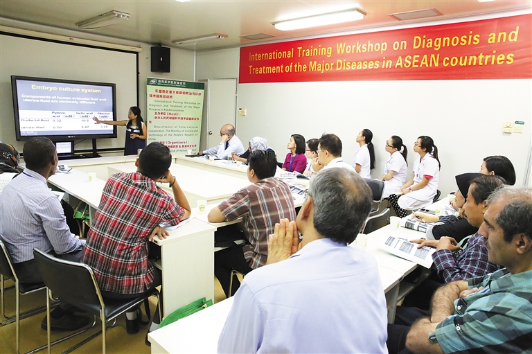 “作为海南医学院的附属医院,我们同时也是教学医院,科研方面有着自己的国际化需求。国家提出的‘一带一路’倡议正和我们的国际化需求相吻合。”海南医学院第一附属医院副院长郝新宝介绍,该院承担了国家科技部的相关项目,从2012年起,依托海南省人类生殖与遗传重点实验室,联合香港中文大学承办了4届科技部“东盟地区重大热带疾病的防治与诊疗技术国际培训班”。今年的培训班也将于10月-11月期间举办。