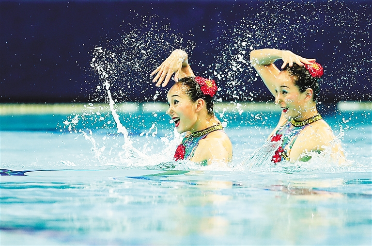 本报讯 5月17日晚,第十三届全运会花样游泳比赛在天津奥林匹克游泳跳水馆结束第一个比赛日的较量。复出的四川姐妹花蒋文文/蒋婷婷弥补了上届全运会的遗憾,以89.9369分夺得冠军。