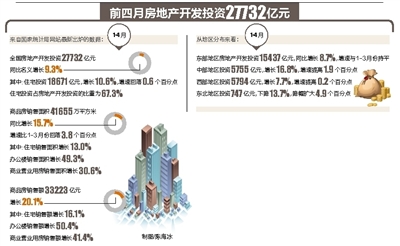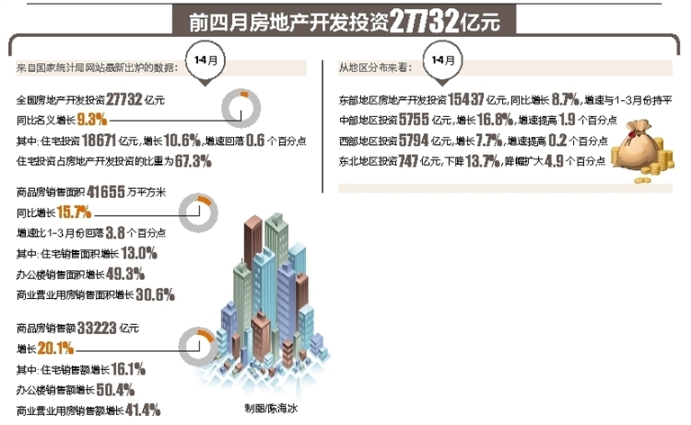 数据显示,1至4月份,全国固定资产投资同比增长8.9%,增速比一季度低0.3个百分点,但房地产开发投资同比增长9.3%,增速比1至3月份提高0.2个百分点。