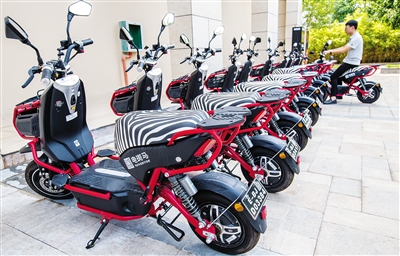 在三亚云港园区,整齐排列着十余辆“电斑马”电动车,继共享单车、共享汽车进驻海南后,共享交通又迎来一大新业态——共享电动车。下载APP、注册信息、扫码开锁,几项简单步骤,三亚信投公司的工作人员小龙便获得了一辆电动车的计时使用权。“电动车很环保,较单车更为便捷省时,现在公司不少同事都会骑‘电斑马’上班。”小龙说。