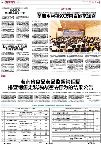 海南省食品药品监督管理局 排查销售走私冻肉违法行为的结果公告