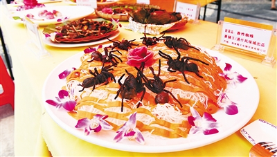 笔者看到,展台上展示的菜品很精致,还配有雕花,摆盘也十分讲究,随处能捕捉到创新元素。香炸蜘蛛是一道新菜品,人气颇高,引来不少游客拍照,有些游客觉得新奇,跃跃欲试,想尝尝这道创新美食。展示活动结束后,市民游客在现场就品尝了展示的菜品,椒盐河虾、灵芝鸡汤、碳烤鸡以及烤羊排等。