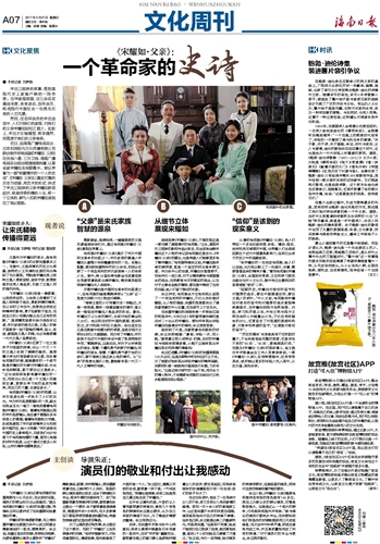 “《宋耀如·父亲》这部电视剧的拍摄周期在100天左右,在这段时间里,演员们的敬业和付出让我感动。”提及电视剧《宋耀如·父亲》的拍摄过程,导演朱正向记者讲述了在拍摄期间她最难忘的事。