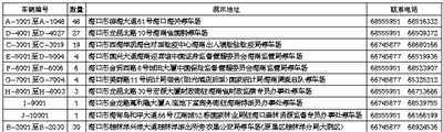展示地址:请竞买人对应中央驻琼垂直管理单位车改取消车辆网络竞价拍卖车辆明细表的车辆信息及编号,自行前往车辆展示地址查勘车辆。
