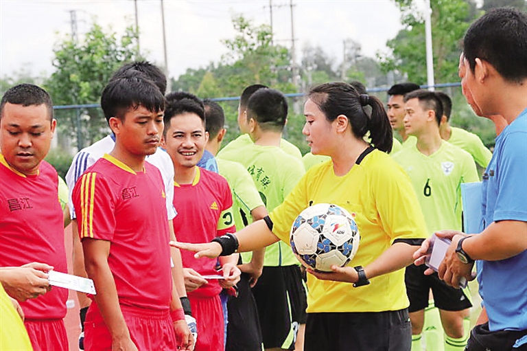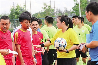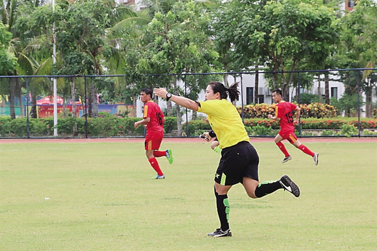 在海南业余足球赛场上,男性裁判员比比皆是,女裁判员可谓凤毛麟角。巧的是,海南仅有的两名女裁判均是教师,一个是琼海长坡中学的体育老师孔繁思,另外一名是文昌翁田镇大福小学的外语老师冯小微。