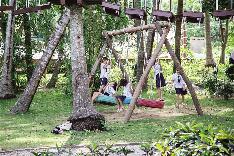 “这种闯关游戏好刺激呀!”12岁的三亚男孩吴英岳从“丛林穿越”树上下来,安全装置都来不及脱,兴奋地对妈妈说道。五月初,三亚海棠区青塘村亲子乐园开园时,和吴英岳一样首批入园体验丛林穿越的孩子们玩嗨了!