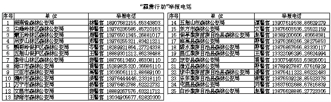 海南省森林公安局公布打击破坏野生动物资源违法犯罪专项行动举报电话