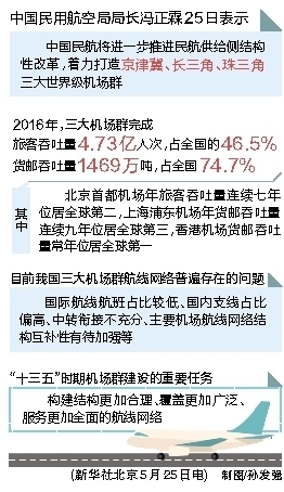 中国民航将进一步推进民航供给侧结构性改革,着力打造京津冀、长三角、珠三角三大世界级机场群