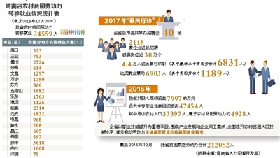 “近年来,到广东务工的海南务工人员越来越多,根据一些广东企业的统计,虽然部分务工人员目前还存在着劳动技能、学历不高的短板,但大部分人来到珠三角后,都会安心地留下来。”于万义说,这些外出务工人员,通过不断提升自己的劳动技能,从简单的出卖劳动力,转变为靠技术吃饭,并在当地长期稳定地工作。他也希望更多的人在外事业取得成功后,再返乡创业,带动家乡更多的人就业。