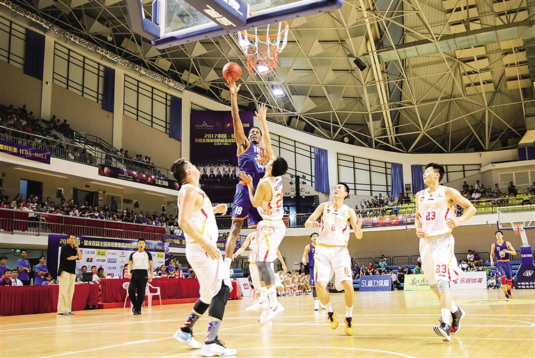 首场比赛由CBA江苏同曦队对阵NBL贵州森航队,江苏同曦由“亚洲飞人”胡卫东任总教练,队中有三届CBA常规赛MVP唐正东坐镇,整体实力不容小觑。贵州森航队是NBL联盟传统强队,球队近年战绩显赫,2015-2016赛季进入四强、2016-2017赛季斩获亚军,在“2016中国陵水NBL四强争霸赛”中力克劲敌夺得冠军。开赛后,江苏同曦队率先进入状态,内突外投打出一波9:0的攻势。首节结束,江苏同曦队19:10领先贵州森航队9分。上半场结束,江苏同曦队44:34领先贵州森航队10分。