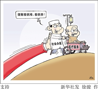 审批手续互相“打架”、医生非“自由人”、基本医保难覆盖……目前,社会办医往往遭遇各种政策“玻璃门”。近日,国务院办公厅印发《关于支持社会力量提供多层次多样化医疗服务的意见》,此举能否缓解百姓“看病难”“看病贵”?