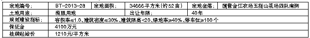 经保亭黎族苗族自治县人民政府批准,保亭黎族苗族自治县国土资源局决定以挂牌方式出让一宗地块的国有土地使用权。现就有关事项公告如下:一、挂牌出让地块的基本情况和规划指标要求