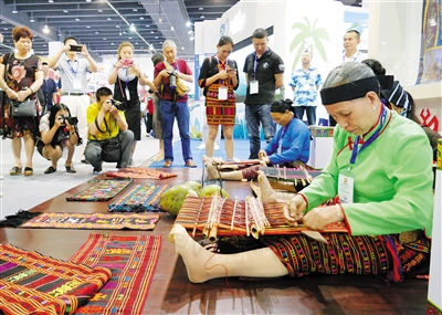 “这个椰壳包独特又漂亮,里面竟然还有一个小音箱,音质还不错,我当即就买了两个”“早就听说海南的少数民族手工艺品很有名,今天有幸亲眼看到黎族的织锦艺术,这种衍生的不仅仅是商品,更是一种文化,值得保护传承”……在浙江义乌举办的第九届中国国际旅游商品博览会海南展馆内,精美的旅游商品吸引了大量游客。