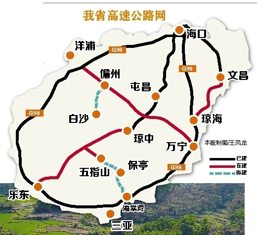 翻开最新版海南地图可以看到,目前我省各市县除三沙外,只剩下保亭境内还未有高速公路经过,而在建中的琼乐高速和万洋高速也只是分别擦过五指山和白沙一角。