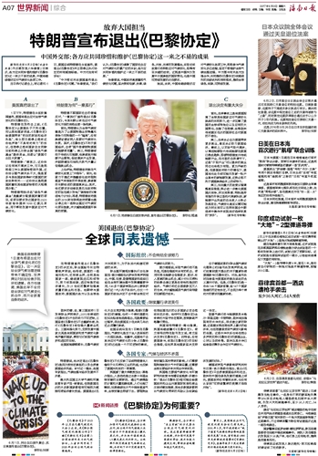 特朗普宣布退出《巴黎协定》