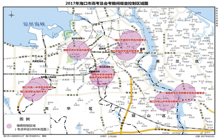 附:2017年海口市高考及会考期间噪音控制区域图