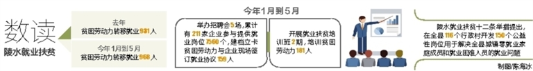 据统计,相较于去年,陵水今年就业扶贫成效更大,去年实现贫困劳动力转移就业931人,而今年仅1月至5月就实现劳动力就业转移968人。