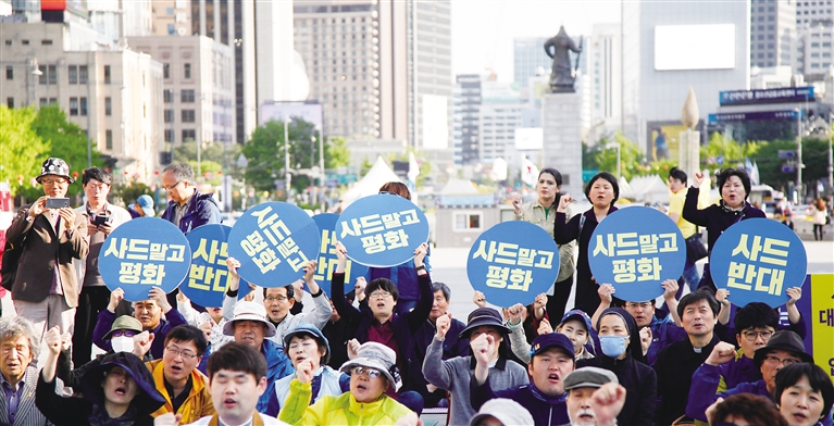 目前韩国国内要求重新审视“萨德”部署问题的呼声高涨。执政党共同民主党“萨德”对策特别委员会5月12日召开记者会,呼吁中断部署“萨德”系统,并要求对部署“萨德”履行国会审批程序。
