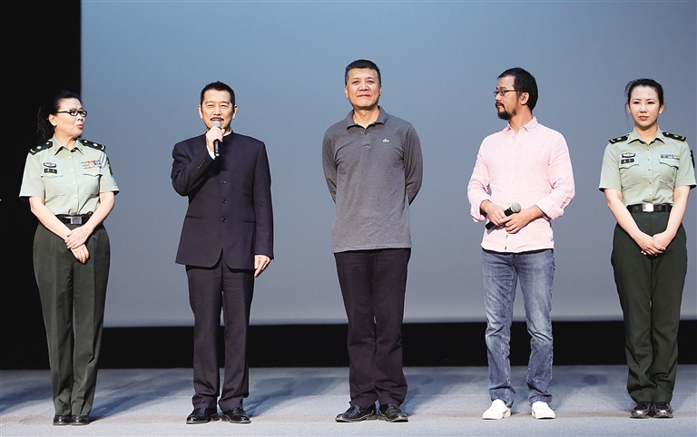 6月6日,电影《血战湘江》在清华大学举行巡映。该片讲述了1934年红军付出巨大牺牲血战湘江的悲壮故事。图为导演陈力,主演孙维民、刘之冰、陈创、唐田(左起)与清华大学师生分享电影拍摄感受。新华社记者 郑焕松 摄