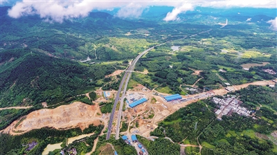 6月7日上午,在琼中黎族苗族自治县湾岭镇老市村附近的岭门互通,建设者正加紧施工。据介绍,岭门互通是海南中线高速公路(南北走向)与万洋高速公路(东西走向)的交汇点,是海南“田”字型高速公路的中心点。