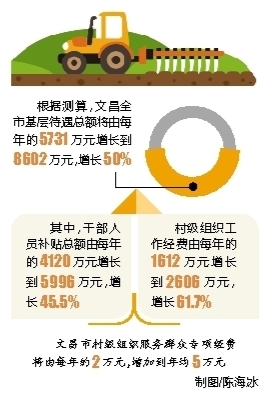 按照新标准,文昌293个村(社区)及其在职和离任的村(社区)“两委”干部、村(居)民小组组长和副组长都将从中受益。调整后的补贴,人员补贴从2017年7月1日起开始执行,村级组织经费从2017年1月1日起开始执行。