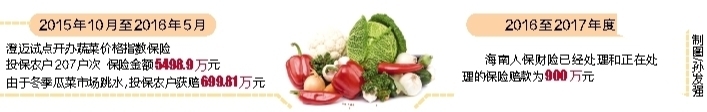 据了解,澄迈是我省三个国家农业示范园区中,唯一获得中央财政“以奖代补”资金补贴的县,自2015年起,中央财政分三年,每年给该县1000万元的补贴资金,扶持农业产业与农业保险事业的发展。澄迈每年安排500万元支持澄迈县冬季瓜菜价格指数保险的发展,并与海南人保财险携手开发保险创新险种,在全省率先试点开办了蔬菜价格指数保险。