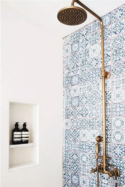 如果担心花纹瓷砖散发的民族风情太强烈,可以选择素雅的色调。