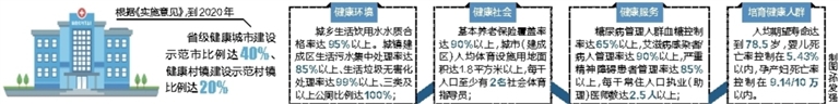 根据《实施意见》,到2017年,我省应建立健全健康城市、健康村镇建设管理机制,形成一套符合我省实际的科学、有效、可行的指标和评价体系,推动各市县开展建设试点,基本形成可推广的建设模式。