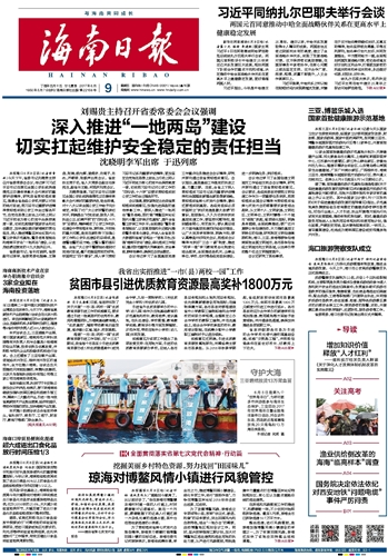 海南日报 头版 001 2017-06-091 2017年06月09日 星期五