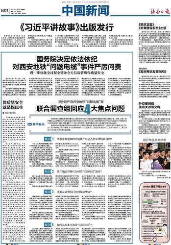国务院决定依法依纪对西安地铁“问题电缆”事件严厉问责