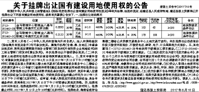 关于挂牌出让国有建设用地使用权的公告
