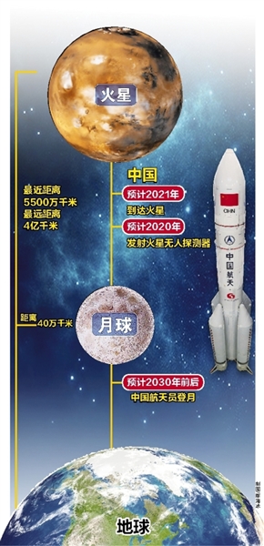 中国国家航天局副局长吴艳华说,人类要勇敢探索,挑战未来。月球见证了上世纪六、七十年代人类探索太空的壮举,人类下一步要征服火星,征服其他星球,这是航天人的使命。尽管还没有载人探测火星计划,但中国已启动了火星无人探测工程,2020年将发射火星探测器,2021年到达火星。