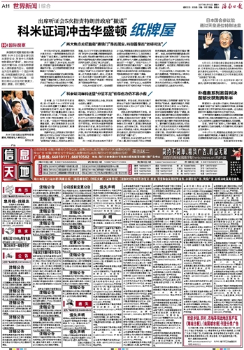 科米证词冲击华盛顿纸牌屋