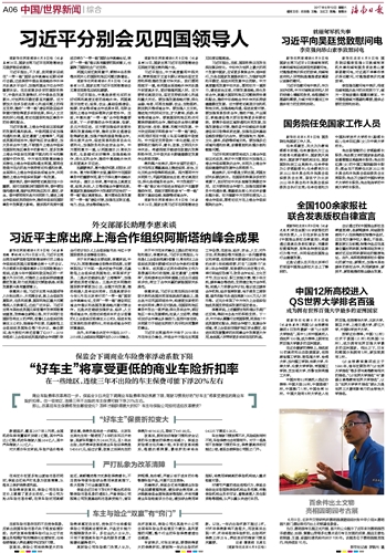 海南日报 中国/世界新闻综合 006 2017-06-101 2017年06月10日 星期六