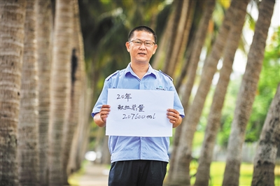 1997年6月12日,刘筱杰的人生开始与献血结下不解之缘。时至今日,20年韶华恍然流逝,47岁的刘筱杰已经无偿献血148次,共献出20.76万毫升的鲜血。