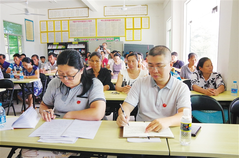 “今后五年,是海南全面建成小康社会、加快建设国际旅游岛的关键时期。党员干部必须起到带头引领作用。”6月10日,三亚育才生态区马脚村的104名党员迎来一堂“特殊党课”。在三亚市农业局副局长冯永杰的带领下,党员干部们重温了省第七次党代会报告,领会党代会报告中“一个主题”“四个目标”“一张蓝图”“三大优势”“三大愿景”“六个坚定不移”“九大任务”等关键内容,集思广益,描绘美丽幸福家园的新蓝图。