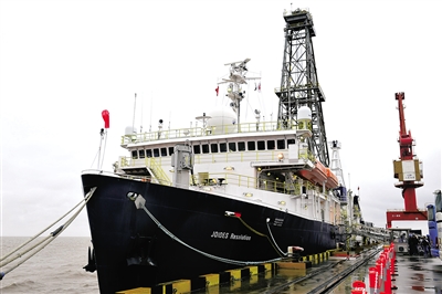 11日,美国“决心”号大洋钻探船停靠上海南港码头,这也是国际大洋钻探船首次停靠中国大陆港口。
