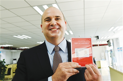 6月16日,在北京市公安局出入境管理局中关村外国人服务大厅,一位外籍人士展示刚取得的2017版外国人永久居留身份证。 当日,2017版外国人永久居留身份证正式启用。自2017年6月16日起,公安部对经批准取得在华永久居留资格的外国人签发2017版外国人永久居留身份证,2017版外国人永久居留身份证启用后,仍然有效的现行外国人永久居留证可以继续使用,持证人也可以申请换发新版证件。 据介绍,2017版外国人永久居留身份证参照第二代居民身份证标准设计制作,内嵌非接触式集成电路芯片,持证人个人资料和证件签发管理信息同时存入芯片,可以使用第二代居民身份证阅读机具读取。 自6月1日起,持有效外国人永久居留证的人士可以向原受理机关或居住地的设区市公安机关提出换发新版证件申请。 新华社发