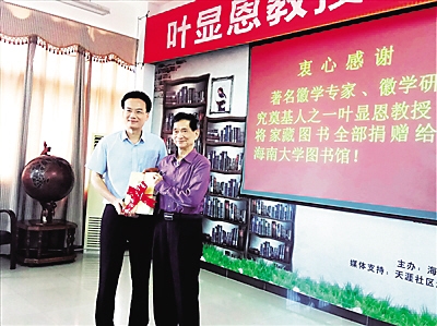 不久前,琼籍徽学专家叶显恩教授将8000册家藏图书全部捐赠给海南大学图书馆。6月10日,海南名中医霍列五后人将部分家传典籍,捐献给海南省图书馆。
