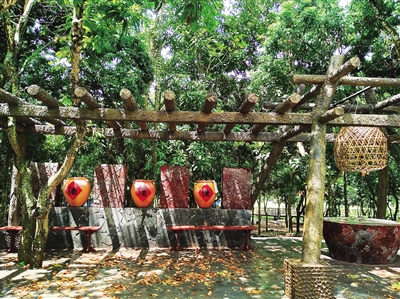 这话,引得许多村民大笑。“这是政府进行村庄改造时设计的独特一景。酒缸也象征着风调雨顺,来年要获得大丰收!在农村,只有丰收了,才有多余的稻米酿制美酒,大家才能过上好日子嘛!”番道村村民王家晓满脸笑意地说着,还热情邀请游人到他家中做客,品尝山兰米酒。
