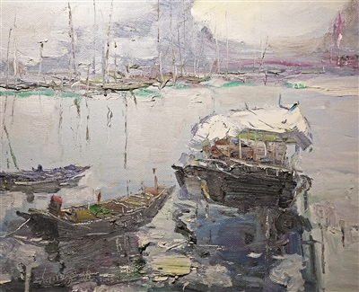 不少参展画家也认为,表现海南特色的油画不能局限于写实,不仅要让海南之美入画,更要在画作中倾诉独特的“海南色彩”。