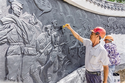 雕塑背后的纪念墙上,刻写着周恩来为“沙基惨案”牺牲的英烈写下的挽联:“喋血沙基为帝国主义死敌,转战潮广为国民革命先锋”。