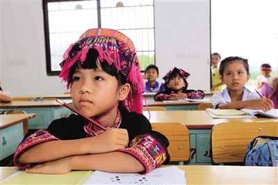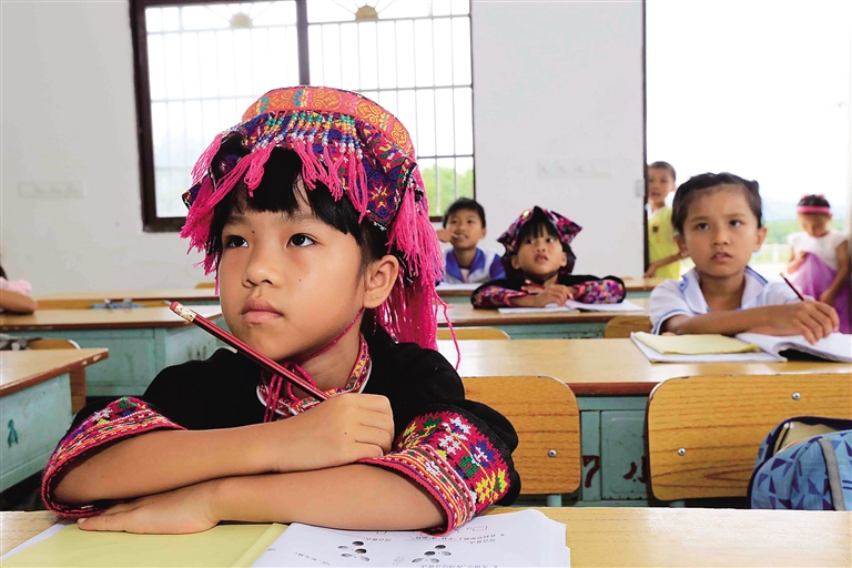 茅石铺村民族教学点的新教室里,孩子们认真学习。