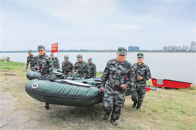 当天,琼山区全区三防单位近百人参加抗洪抢险骨干演练,演练内容包括冲锋舟操舟机安装与撤收、油锯的操作使用、 应急救援及水面抛射器使用、救护落水人员等。本报记者 张茂 通讯员 龙泉 摄